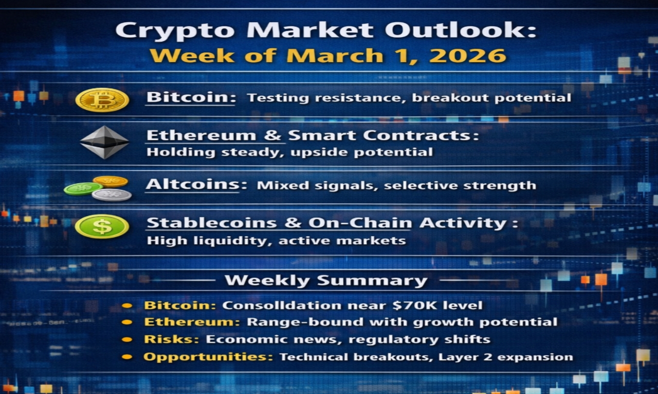 Bitcoin enters the week trading near key resistance levels. After a quiet February, bulls are hoping for a push above $70,000. However, recent price action suggests consolidation may continue unless volume picks up. A dip below $67,000 could trigger short-term selling pressure.