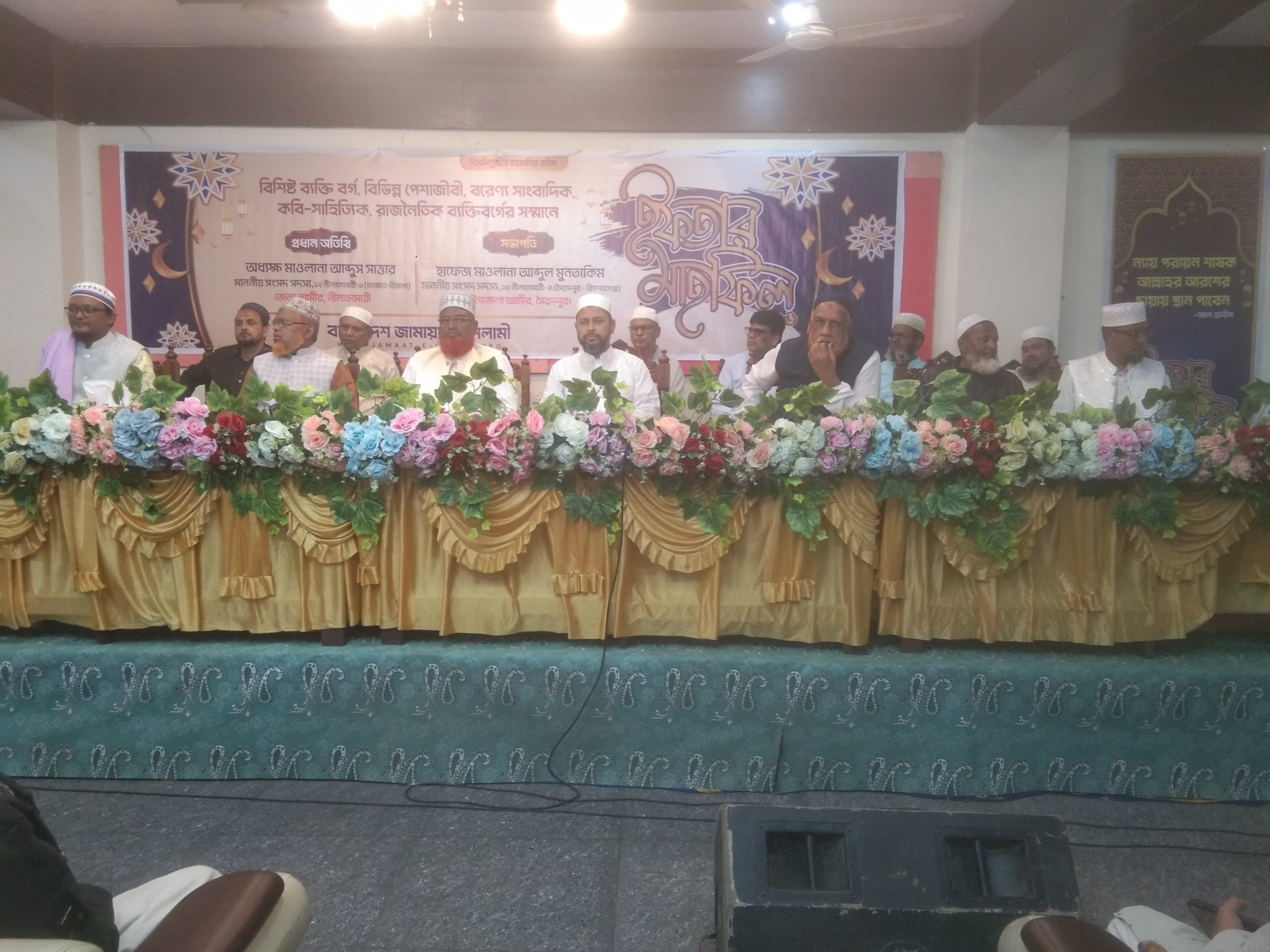 নীলফামারী-৪ আসনের সংসদ সদস্য ও সৈয়দপুর উপজেলা জামায়াতের আমীর হাফেজ মাওলানা আব্দুল মুনতাকিমের সভাপতিত্বে অনুষ্ঠানে প্রধান অতিথি হিসেবে উপস্থিত ছিলেন নীলফামারী জেলা আমীর ও নীলফামারী-১ আসনের সংসদ সদস্য অধ্যক্ষ মাওলানা আব্দুস সাত্তার।