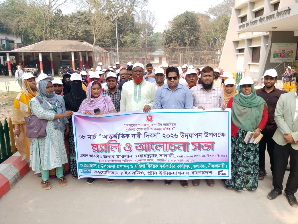 আজকের পদক্ষেপ আগামীর ন্যাবিচার - সুরক্ষিত হউক নারী ও কন্যার অধিকার এ প্রতিপাদ্য শ্লোগানকে ধারন করে সারাদেশের ন্যায় নীলফামারী জলঢাকায় পালিত হয়েছে আন্তর্জাতিক নারী দিবস ২০২৬ ইং।