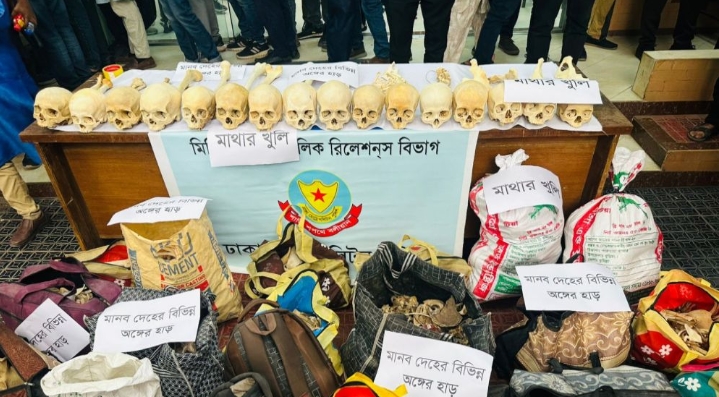 রাজধানীর তেজগাঁও ও উত্তরা এলাকায় অভিযান চালিয়ে কঙ্কাল চোর চক্রের চার সদস্যকে গ্রেফতার করেছে পুলিশ। তাদের কাছ থেকে উদ্ধার করা হয়েছে ৪৭টি মানুষের মাথার খুলি এবং শরীরের বিভিন্ন অংশের হাড়গোড়।