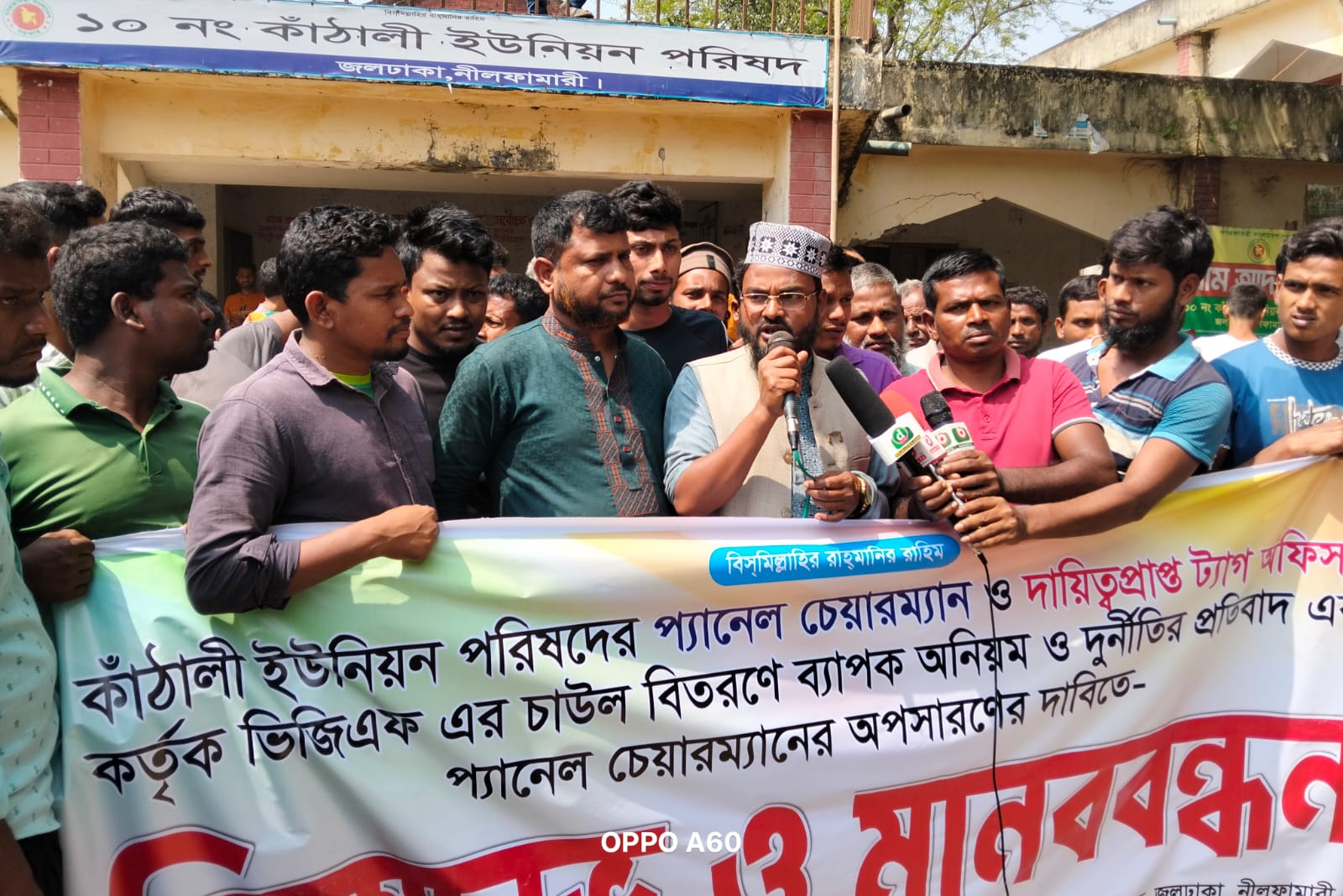 নীলফামারীর জলঢাকায় পবিত্র ঈদুল ফিতর উপলক্ষে সরকারের বিশেষ ভিজিএফ (VGF) কর্মসূচির চাল বিতরণে ব্যাপক অনিয়ম ও দুর্নীতির অভিযোগ উঠেছে। এর প্রতিবাদে