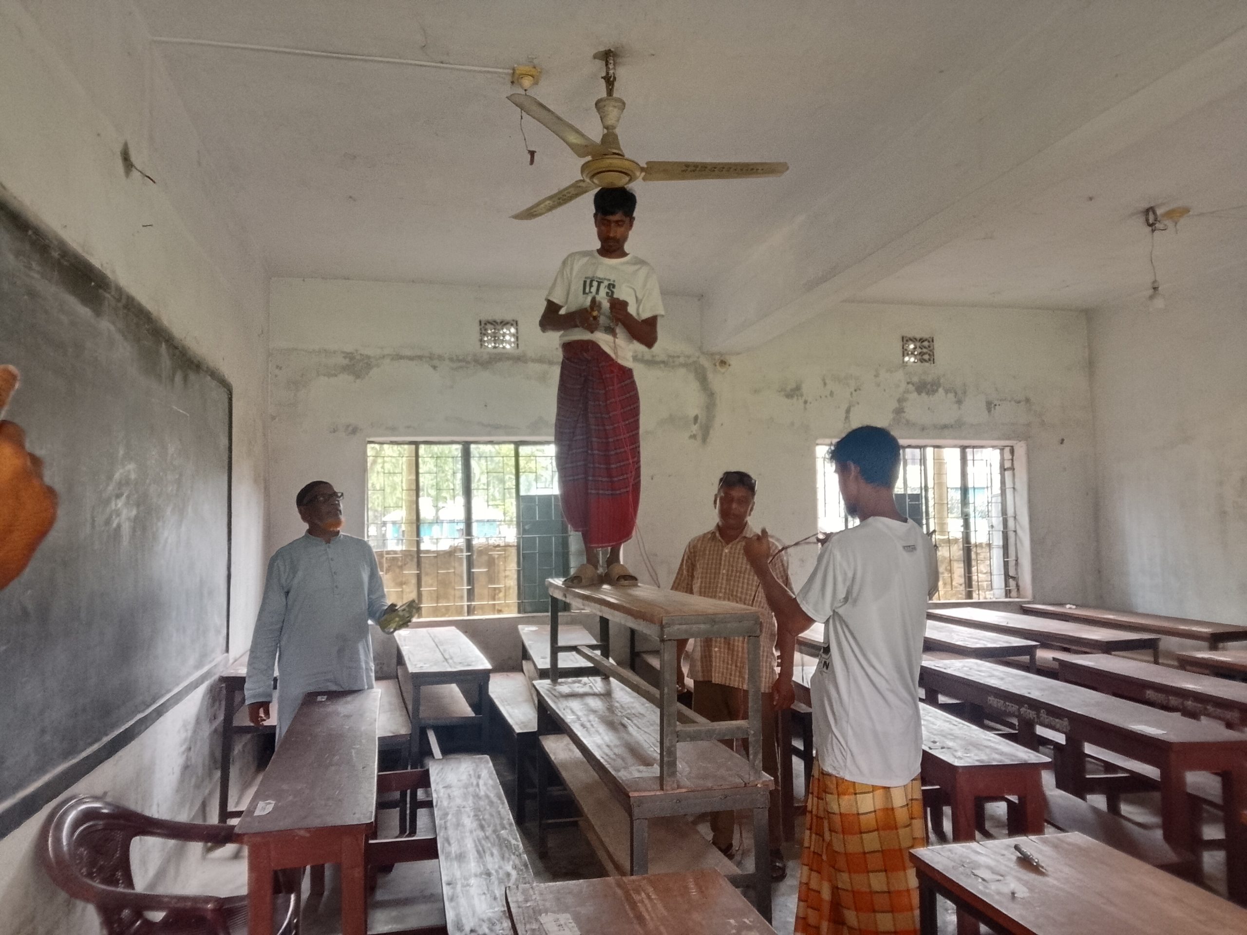রাশেদুজ্জামান সুমন: নীলফামারী জলঢাকায় প্রচন্ড গরমের কারণে চলমান এসএসসি পরীক্ষার্থীদের জন্য ২৮টি ফ্যানের ব্যবস্থা করে দিলেন প্রধান শিক্ষক। বুধবার জলঢাকা বালিকা উচ্চ বিদ্যালয়ে প্রতিটি রুমে স্কুলের অর্থায়নে নতুন করে ২৮ টি ফ্যান সংযোজন করা হয়। এতে করে পরিক্ষার্থীরা গরমের সময় ফ্যানের হাওয়ায় ভালো ভাবে পরিক্ষা দিতে পারে। সিনিয়র সহকারী শিক্ষক মোহাম্মদ শাহিনুর রহমান জানান," গতকালের পরীক্ষার সময় ফ্যান না থাকায় পরীক্ষার্থীদের গরমের কারণে দুর্ভোগ পোহাতে হয়েছে। তাই ফ্যানের ব্যবস্থা করা।" প্রধান শিক্ষক মোস্তাফিজুর রহমান বলেন," পরীক্ষার্থীদের কথা চিন্তা করে প্রতিটি রুমে নতুন করে আরও ২৮ টি ফ্যান সহ বিভিন্ন কাজ করা হচ্ছে। যাতে তারা র্নিবিঘ্নে পরীক্ষা দিতে পারে।" উল্লেখ্য এই কেন্দ্রে আটটি প্রতিষ্ঠানের ৯৩৮ পরীক্ষার্থী থাকলেও প্রথম দিন নয়জন অনুপস্থিত ছিল।